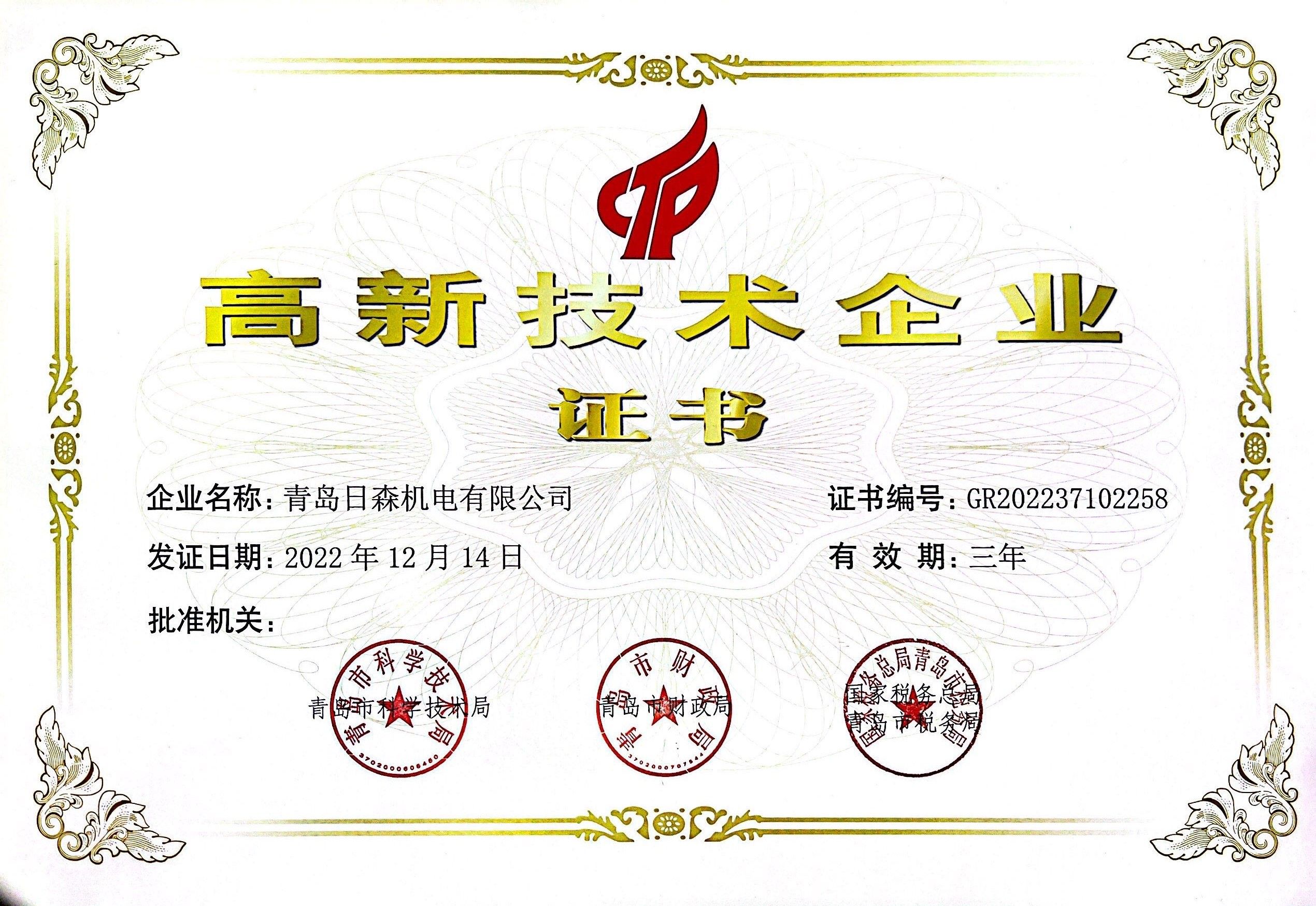 高新技術企業證書