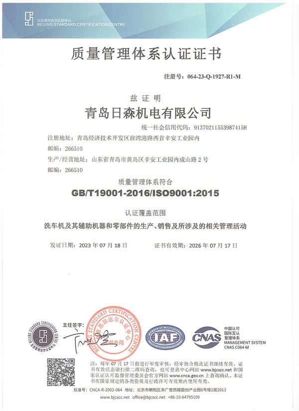 質量管理體系認證證書