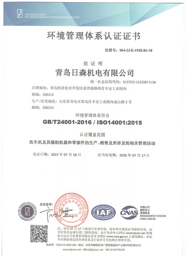 環境管理體系認證證書